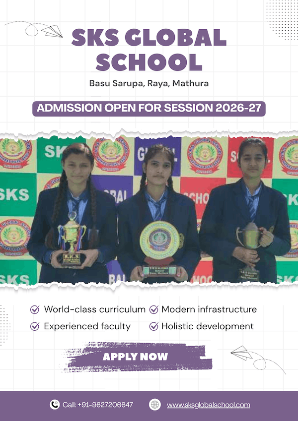 SKS Global School is a well reputed institution, which caters for students from Raya and nearby areas. It is an English Medium School based on continuous and comprehensive evaluation system as per strict guidelines. Admission in the school starts from March for the session commencing 1st May.